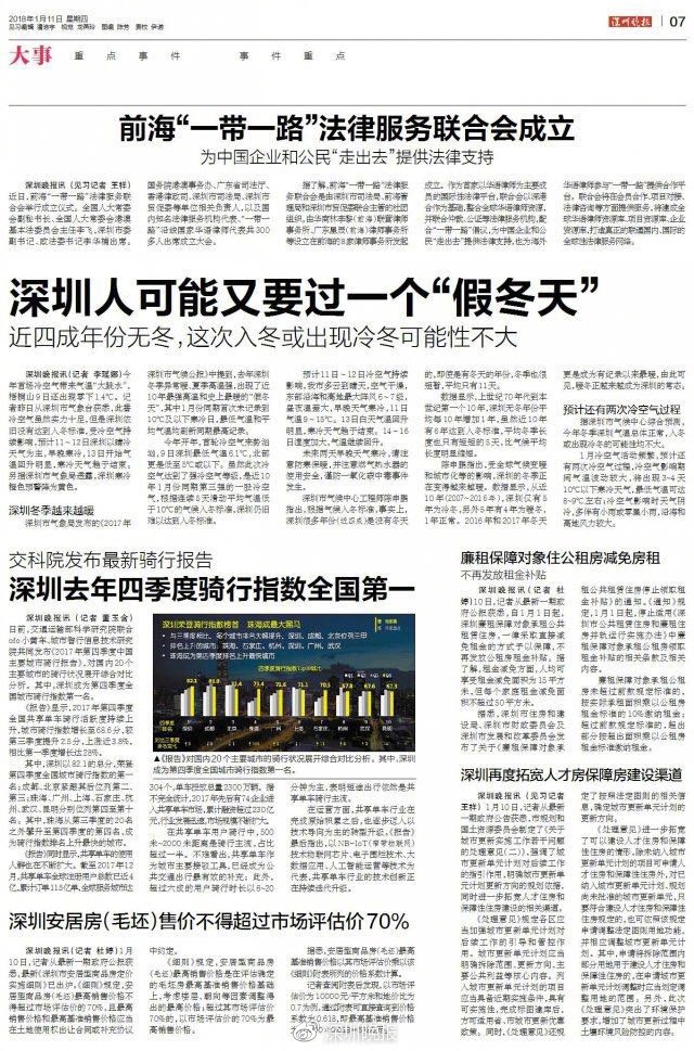 深圳市气象局发布的《2017 年深圳市气候公报》中提到,去年深圳冬季异常暖、夏季高温强,出现了近 10 年最强高温和史上最暖的 " 假冬天 ",其中 1 月份同期首次未记录到 10 ℃及以下寒冷日,最低气温和平均气温均刷新同期最高纪录。