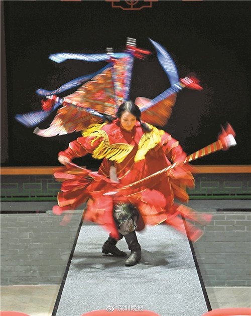 ▲在新桥文化艺术中心——粤剧场排练粤剧穆桂英角色。