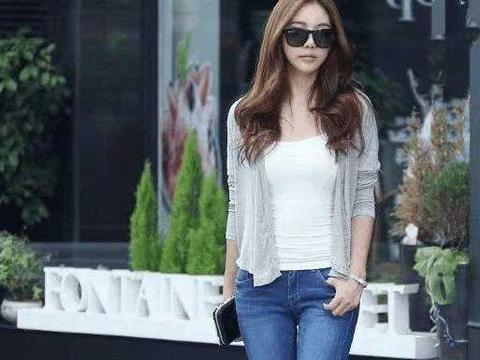 张天爱身穿牛仔单品太漂亮, 就是小腿有点细了