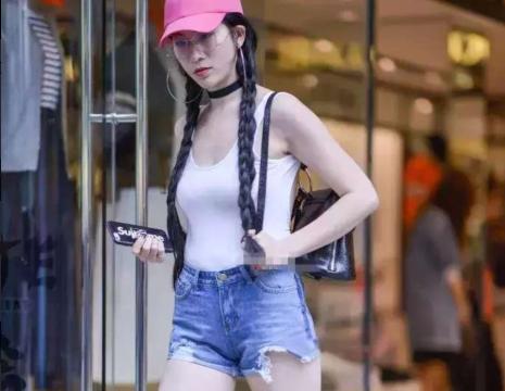 街拍: 大麻花辫的潮流美女, 热裤和高挑身材不能更配