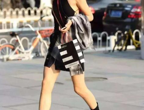 街拍: 性感摩登的黑色小短裙, 这就是传说中的大露背吧