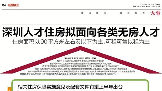 深圳人才住房拟面向无房的各类人才,住房面积以 90 平方米左右及以下为主,可租可售,以租为主。深圳晚报讯 (记者 胡琼兰 陈简文 周倩)1 月 11 日,《深圳市人民政府关于我市人才住房工作情况的报告》《深圳市人民政府关于职业教育发展情况的工作报告》和《深圳市人民政府关于社区健康服务机构运行和发...